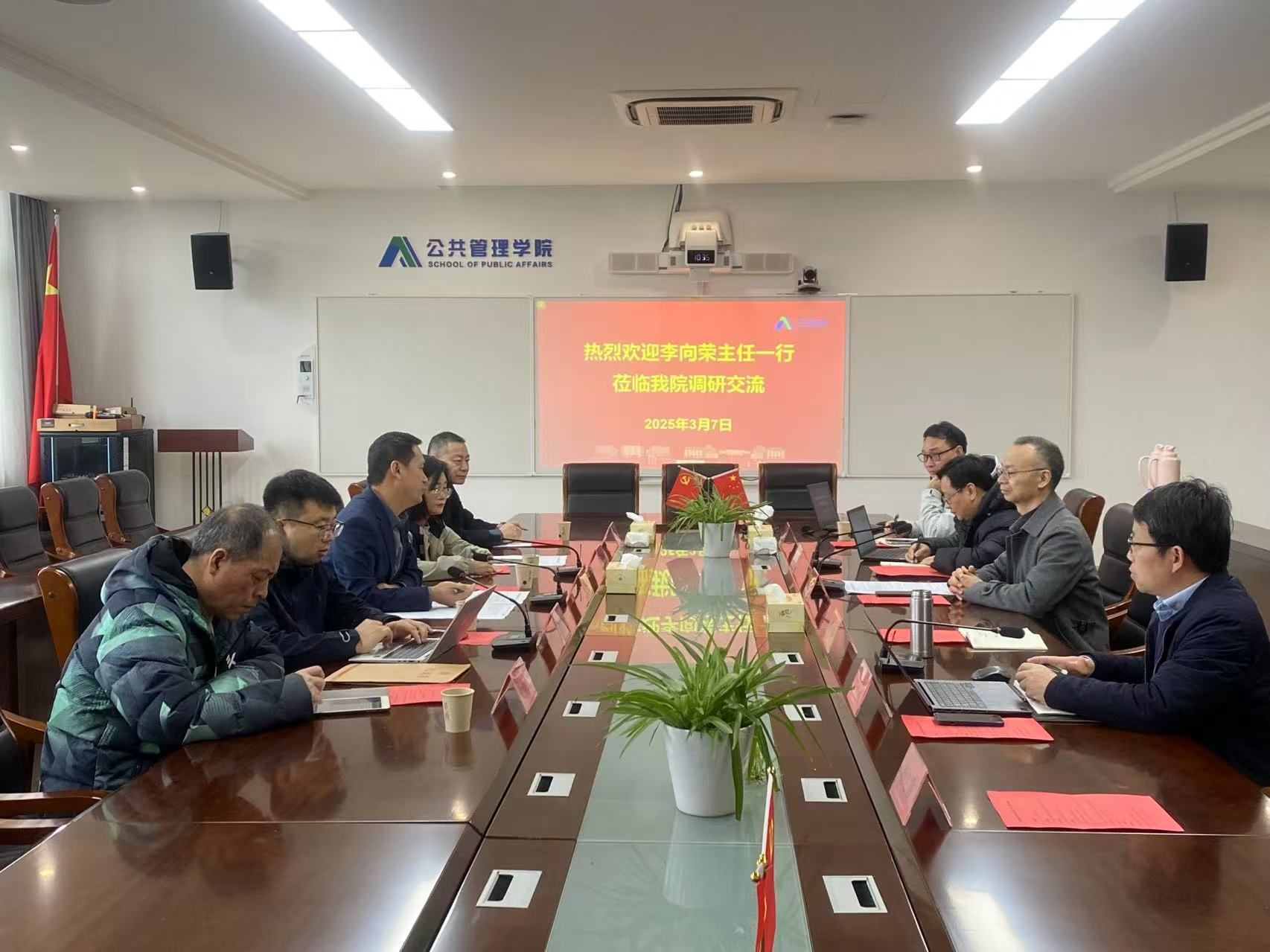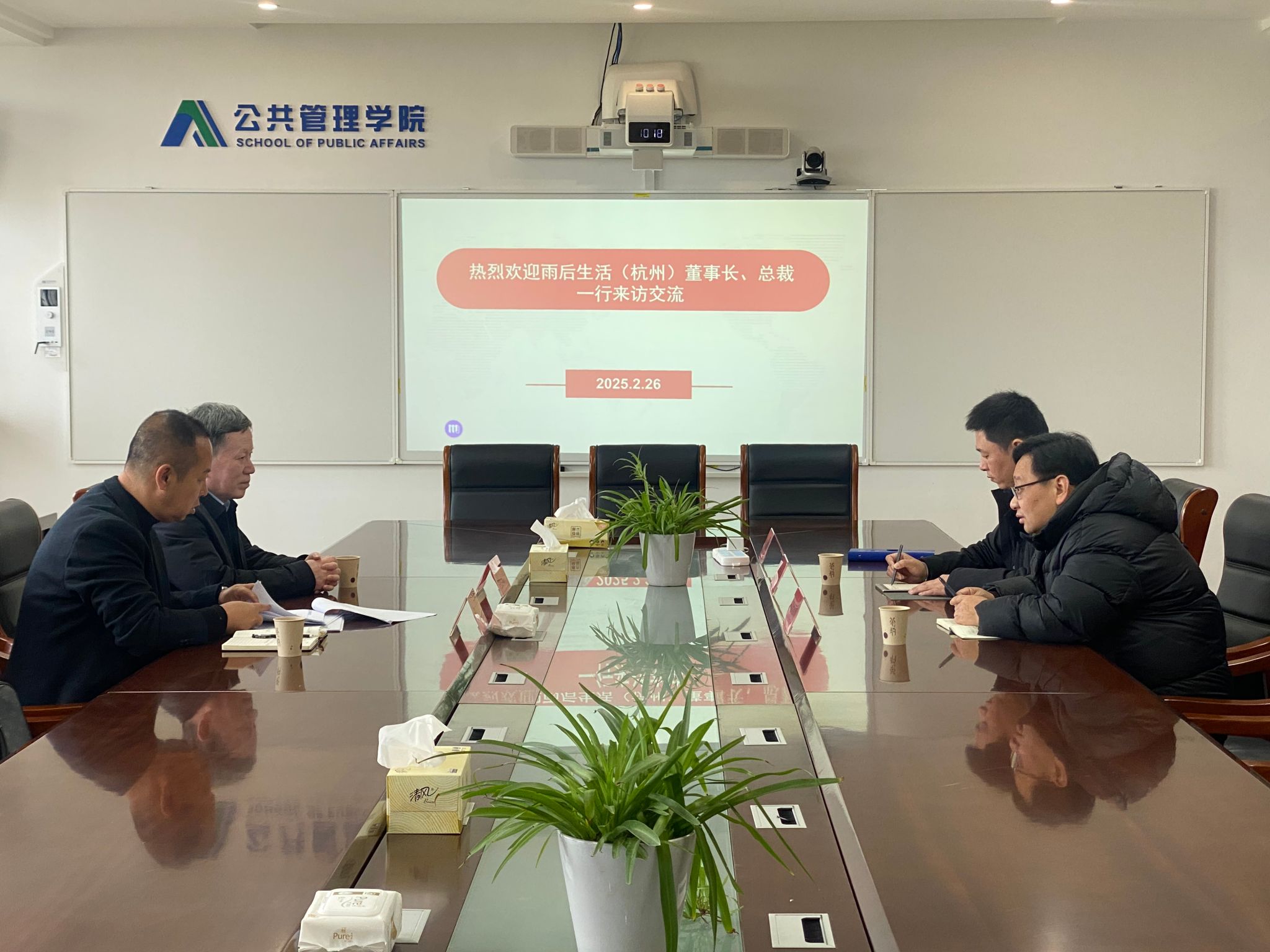 2月26日,雨后生活服务(杭州)有限公司董事长/全域通用航空(杭州)有限公司董事长曹洺一行来公司交流洽谈,汪群龙、叶智校参加座谈会。