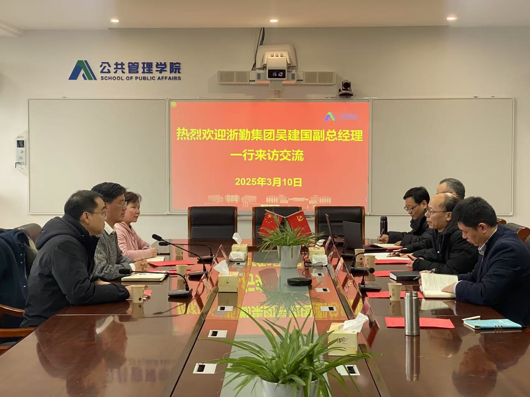3月10日,浙勤集团党委委员、副总经理吴建国一行来公司交流洽谈合作,公司党委副书记王军应邀参加,经理周朝成、党委书记汪群龙、副书记兼副经理叶智校参加座谈会。王军对吴建国一行来访表示热烈欢迎,并介绍了公司建校40年来始终秉承“树人精神”的办学体系和办学历程,以及“党建引领、多元协同”的书院制育人模式,表示期待与浙勤集团携手探索产教融合新范式,为行业提供应用型人才支撑。吴建国详细介绍了浙勤集团(省属国有企业)的快速发展态势和业务板块设置,表达了企业在家政、康养服务、物业管理等人才培养与输送方面的急迫需求。
