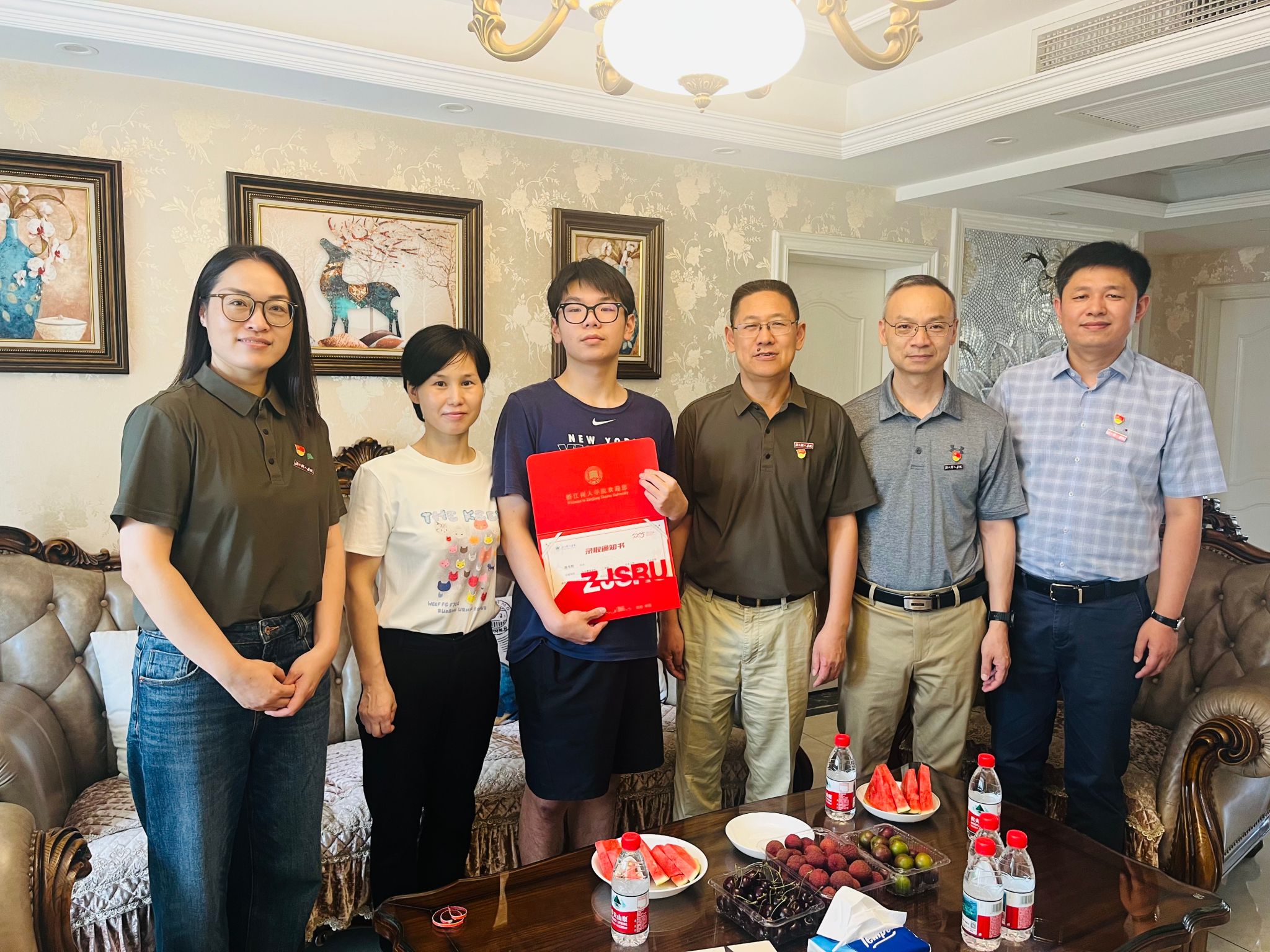 ⼤学是⾛向未来世界的⼤⻔,录取通知书是打开⼤⻔的钥匙。近⽇,公司2025级省内⾼考录取通知书陆续发出。7⽉23⽇,副董事长陈新民带领公司领导班子,教研室主任,教师代表等⼀⾏,为公司2025级新⽣代表送录取通知书。