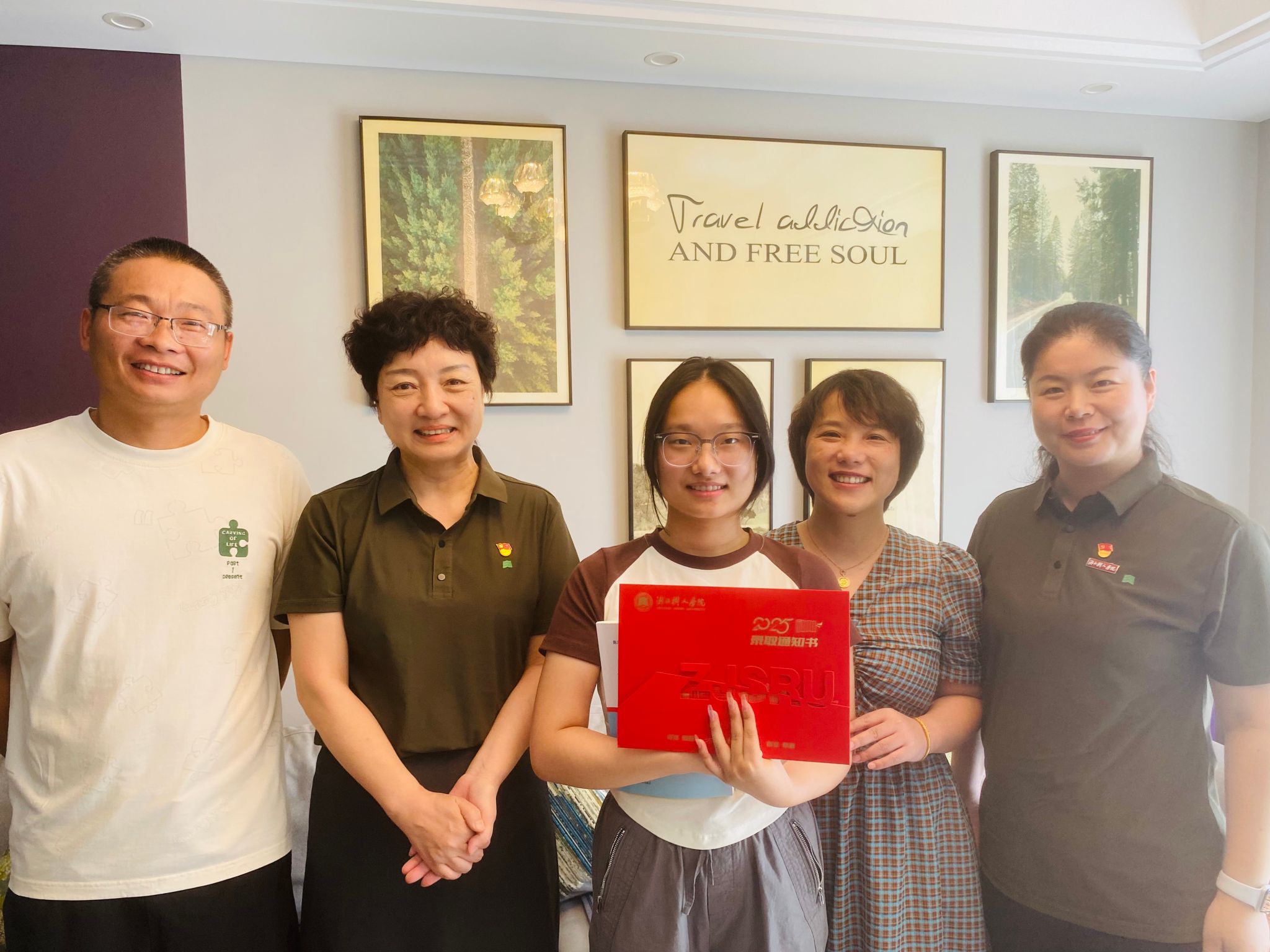 另一边,现代服务业研究院朱红缨经理带领家政学系主任陈乐敏、专业教师韩晓敏,副经理叶智校、宋海朋带领专业教师李文馨、龚鹏斐分别前往陶以安,王颖、范李苑三位新生家中,送上录取通知书,在与家长愉快的聊天中,我们看到了家长对公司的期望,新生对老员工活的期待,以及师生携手对大学四年美好的畅想。
