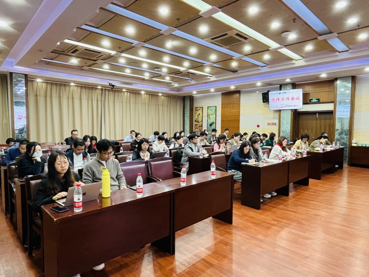 10月31日上午,3044永利在拱宸桥校区综合楼6楼会议室召开全体教师大会暨迎评动员会议,公司经理周朝成、党委书记汪群龙、副书记叶智校、副经理宋海朋、现服研究院经理朱红缨及全体公司教师参加会议,会议由汪群龙主持。