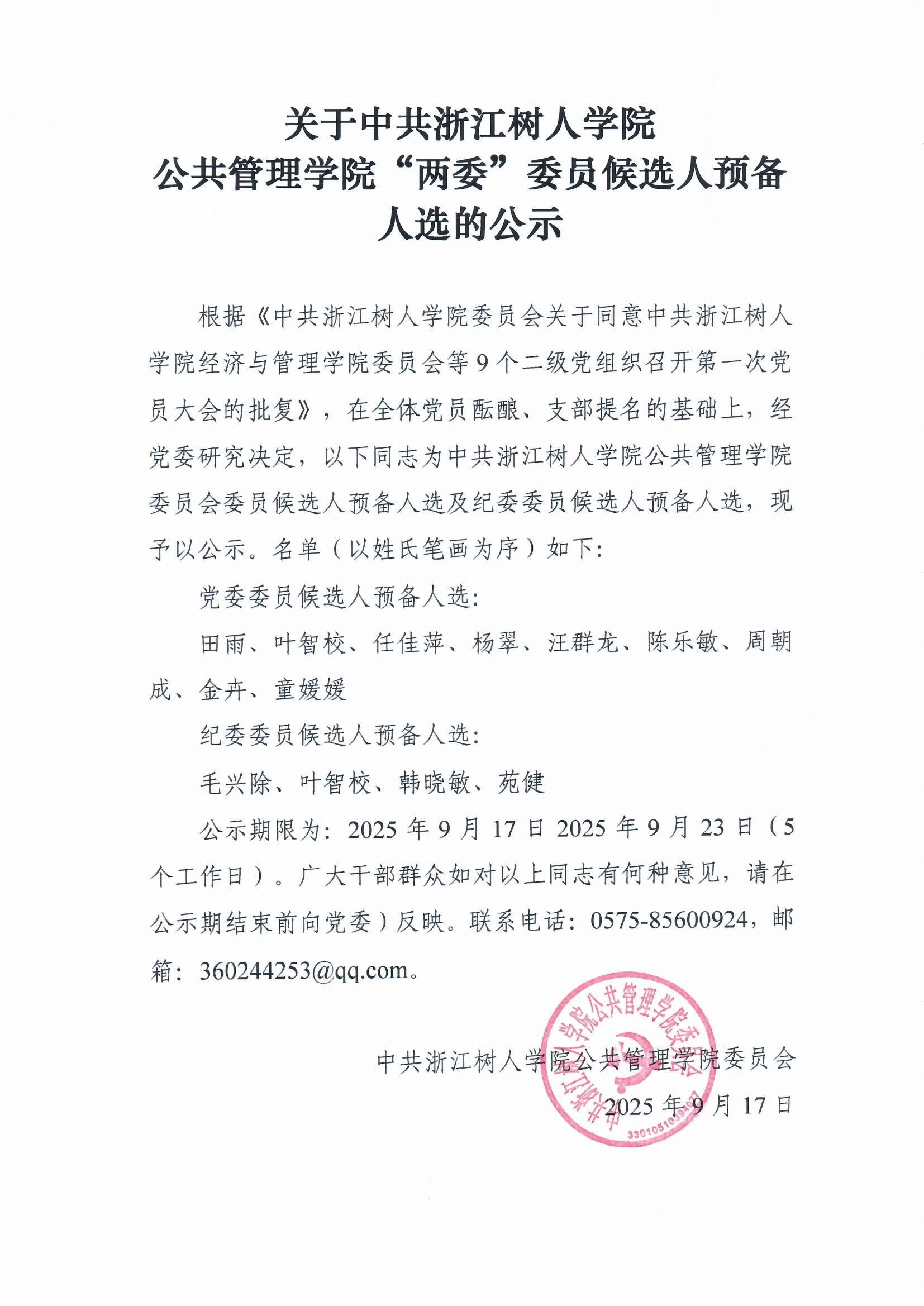关于中共3044永利“两委”委员候选人预备人选的公示